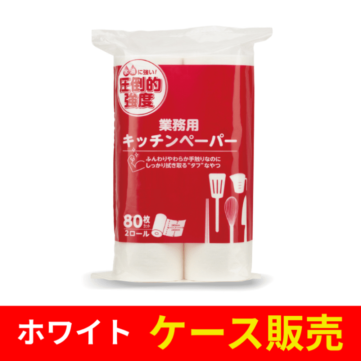 【ケース販売】キッチンペーパー 圧倒的強度 80枚 2ロール ホワイト