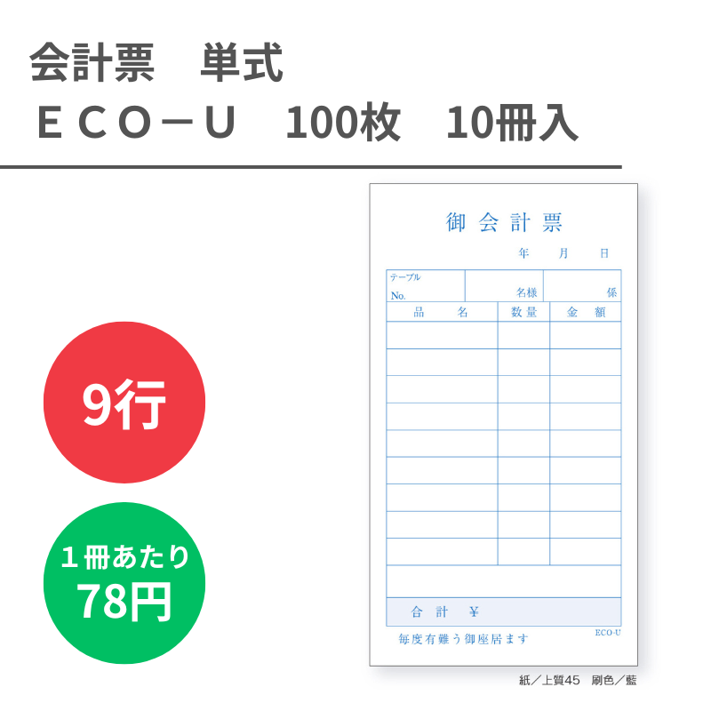 ECO-U 会計票 単式x100枚 10冊