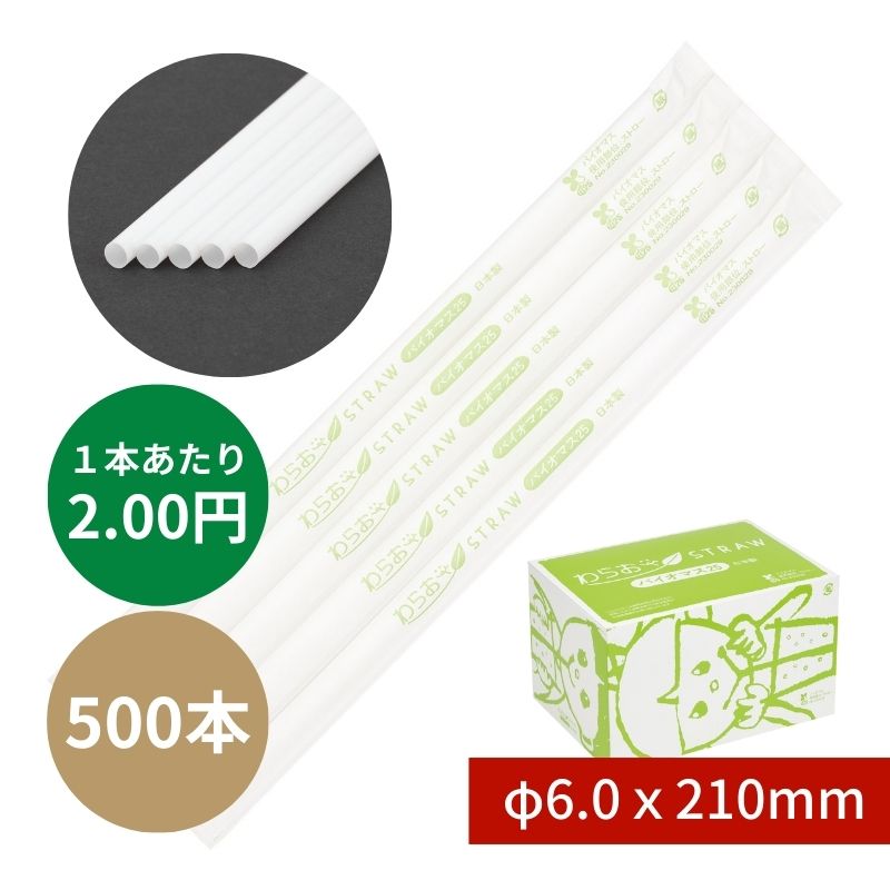 バイオマスストレートストロー №B469 φ6x210mm 500本入 白 紙包装