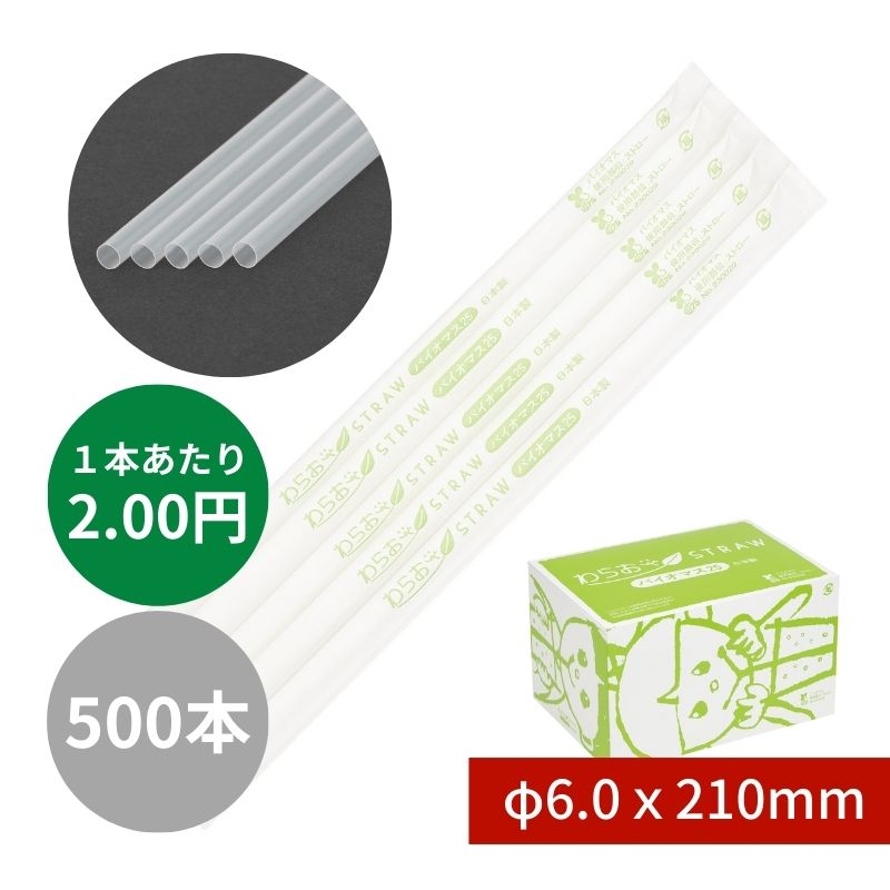 バイオマスストレートストロー №B470 φ6x210mm 500本入 クリア 紙包装