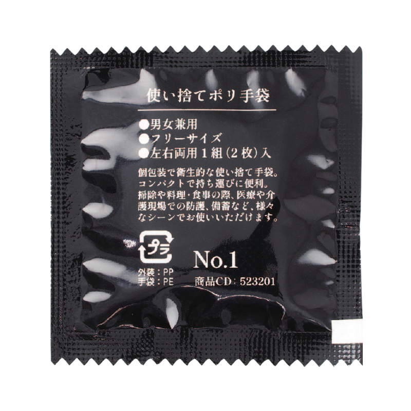 手のひらサイズで衛生的に持ち運べる、厚み15μのしっかりとしたポリエチレン手袋です。