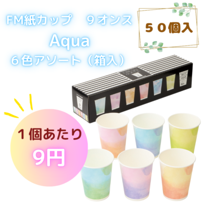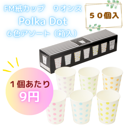 FM紙カップ 9オンス PolkaDot 6色アソート(箱入)