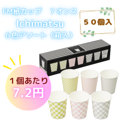 FM紙カップ 7オンス Ichimatsu 6色アソート(箱入)