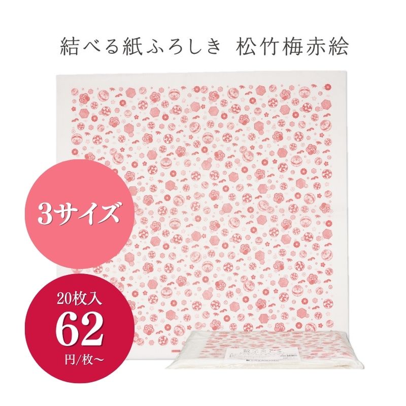 結べる紙ふろしき 松竹梅赤絵 20枚/袋