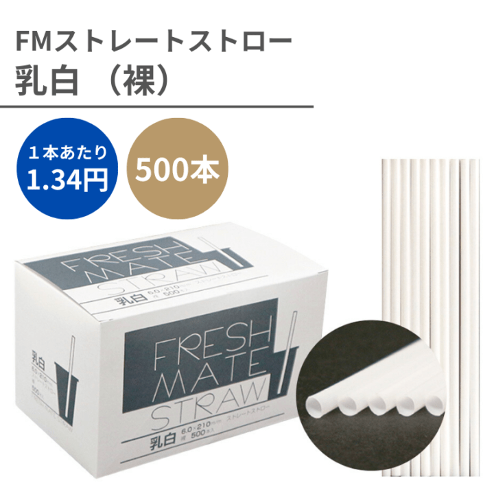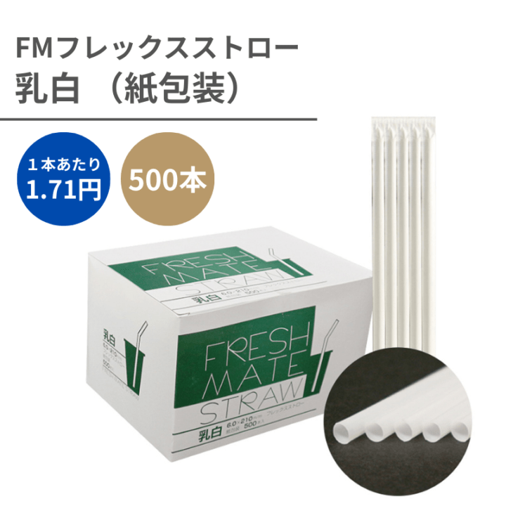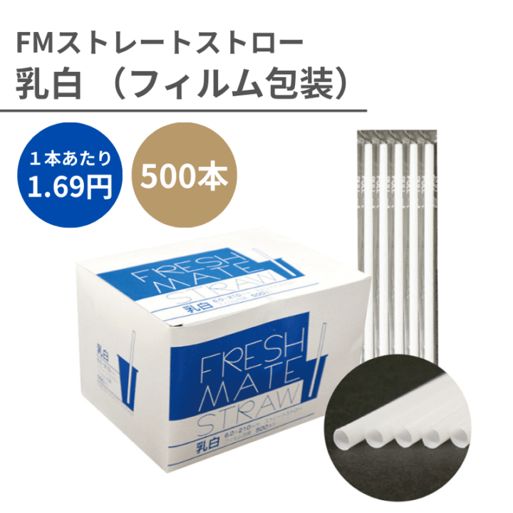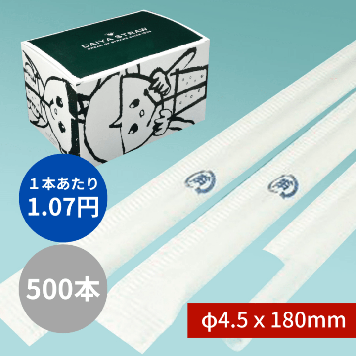 ストレートストロー №900 φ4.5x180mm 500本入 白 紙包装