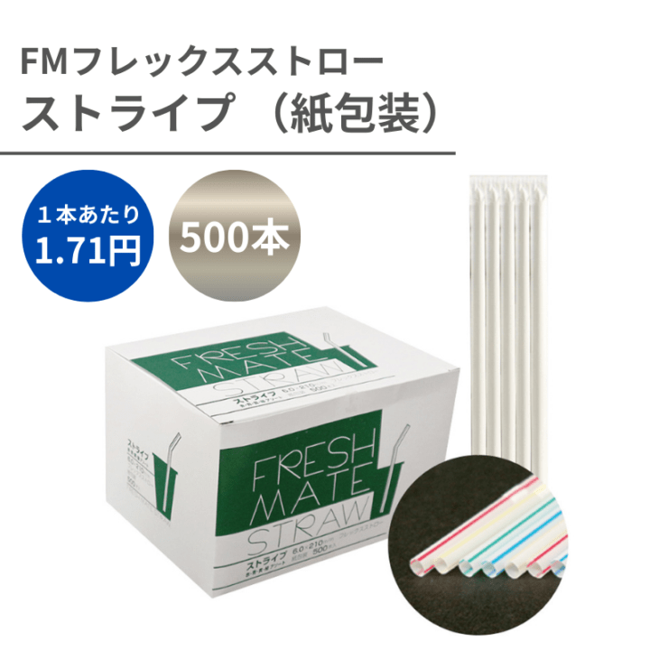 フレックスストロー №426 φ6x210mm 500本入 クリア地ストライプ フィルム包装
