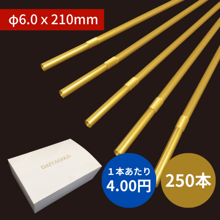 フレックスストロー №806 φ6x210mm 250本入 ダイヤゴールド 包装なし