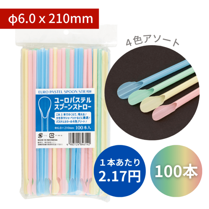 スプーンストロー № φ6x210mm 100本入 ユーロパステル 包装なし