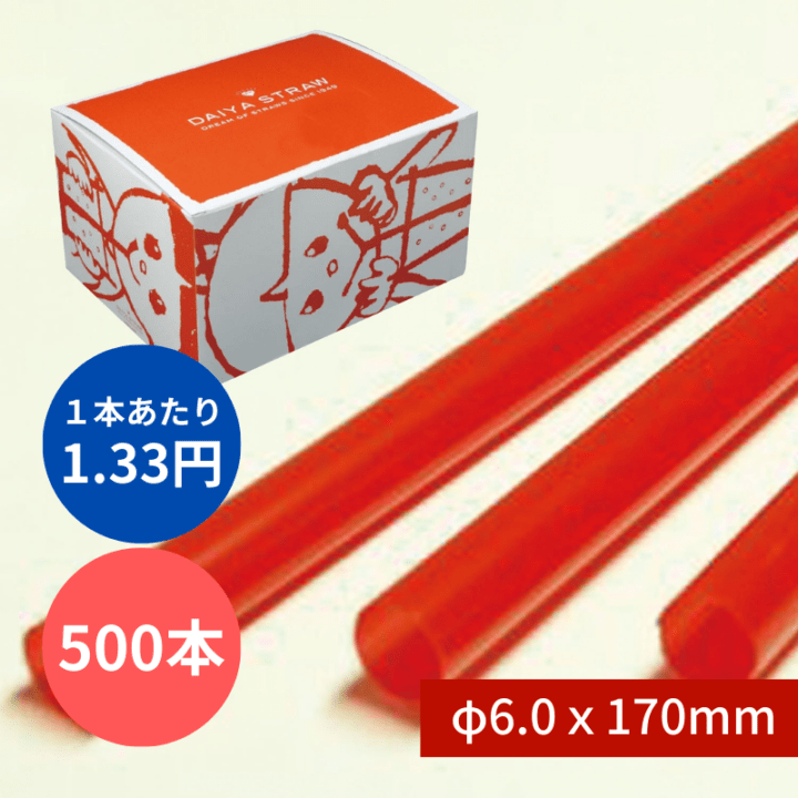 ストレートストロー №403 φ6x170mm 500本入 赤 包装なし
