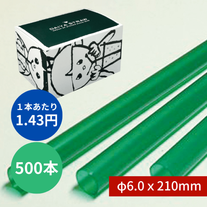 ストレートストロー №502 φ6x210mm 500本入 緑 包装なし