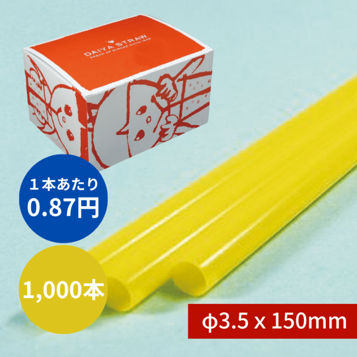 ストレートストロー №316 φ3.5x150mm 1000本入 黄 包装なし