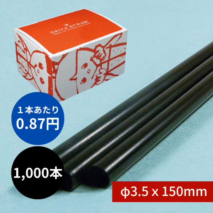 ストレートストロー №319 φ3.5x150mm 1000本入 黒 包装なし