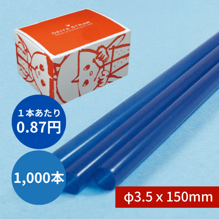 ストレートストロー №318 φ3.5x150mm 1000本入 青 包装なし