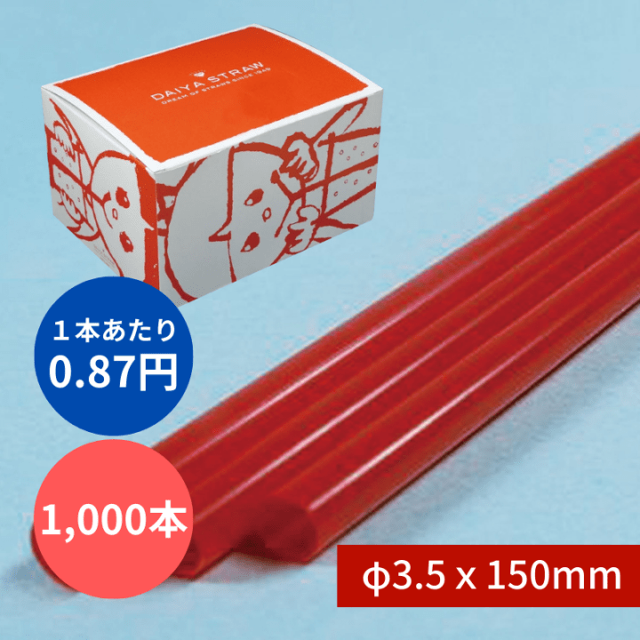 ストレートストロー №315 φ3.5x150mm 1000本入 赤 包装なし