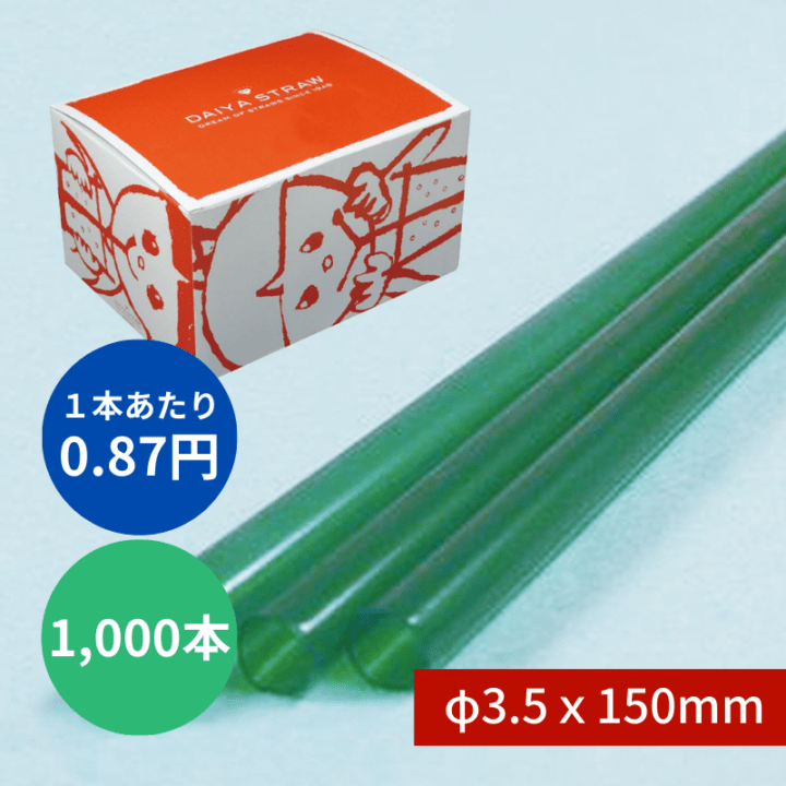 ストレートストロー №317 φ3.5x150mm 1000本入 緑 包装なし