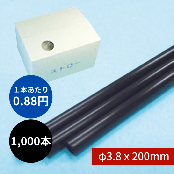 ストレートストロー φ3.8x200mm 1000本入 黒 包装なし