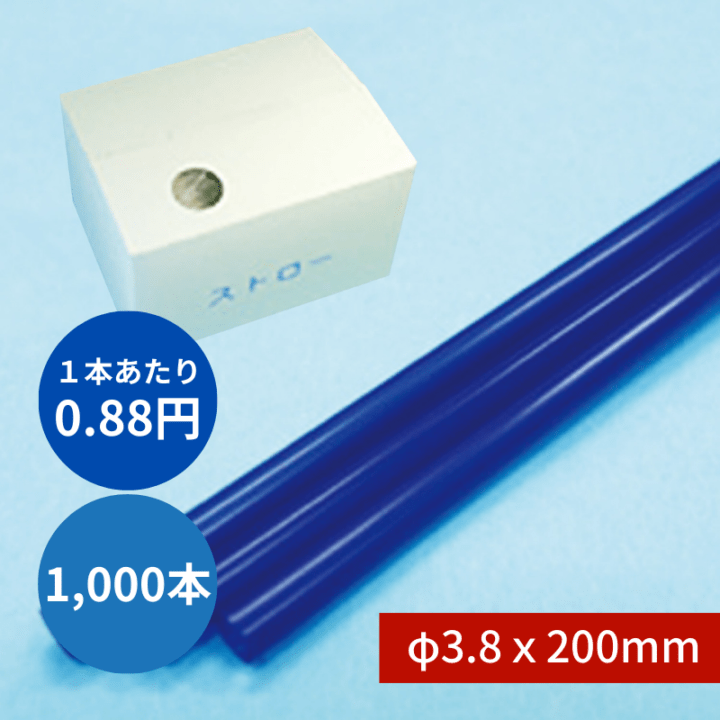 ストレートストロー φ3.8x200mm 1000本入 青 包装なし