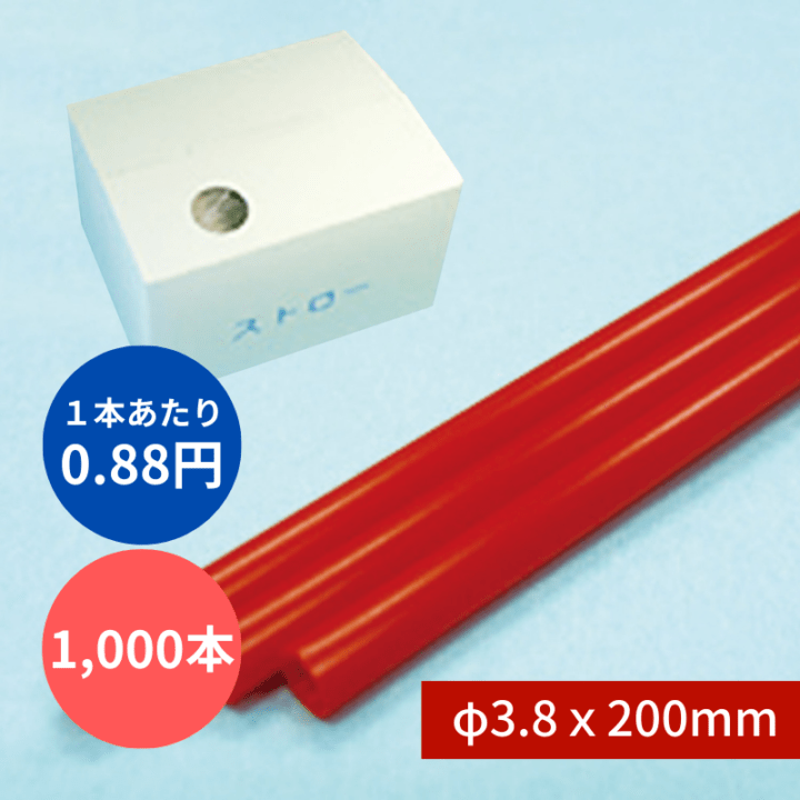 ストレートストロー φ3.8x200mm 1000本入 赤 包装なし