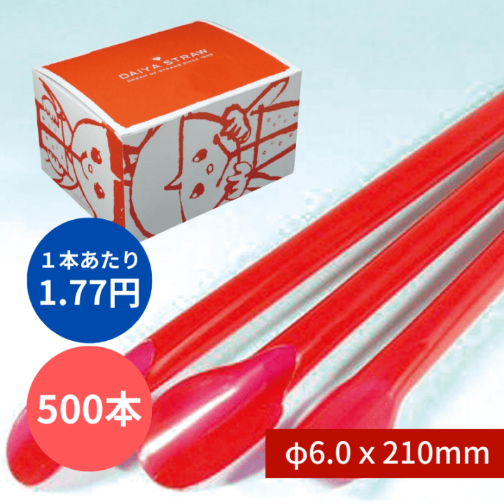 スプーンストロー №916 φ6x210mm 500本入 赤 包装なし