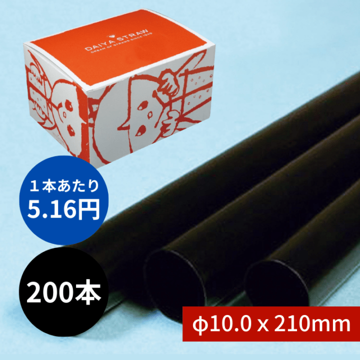 タピオカストロー №604 φ10x210mm 200本入 黒 包装なし