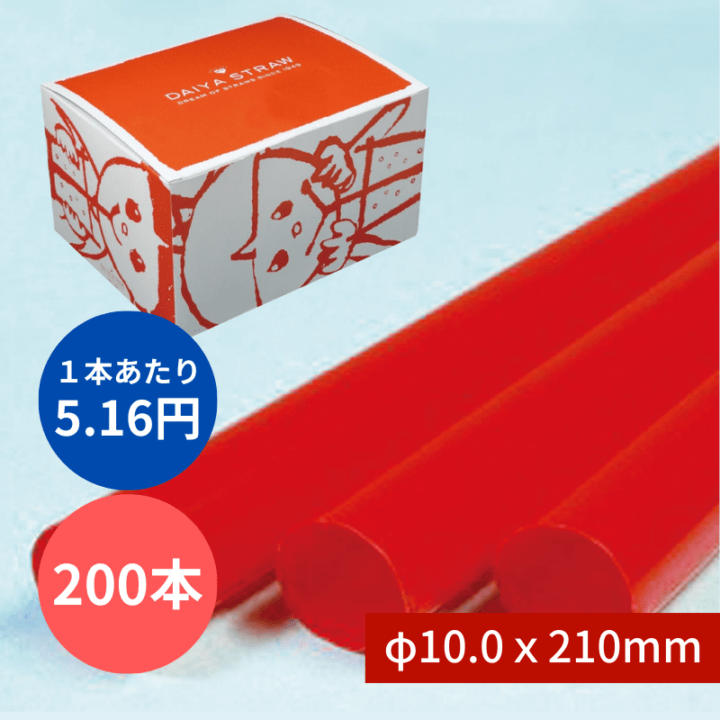 タピオカストロー №600 φ10x210mm 200本入 赤 包装なし
