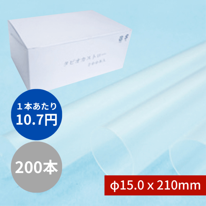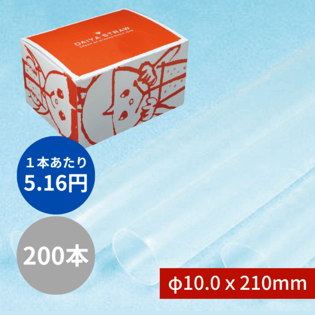 タピオカストロー №606 φ10x210mm 200本入 クリア 包装なし
