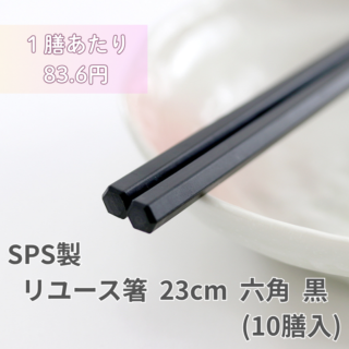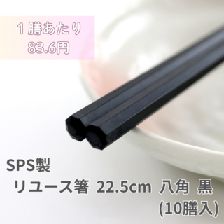 【SPS製リユース箸】 22.5cm 八角 黒 (10膳入)