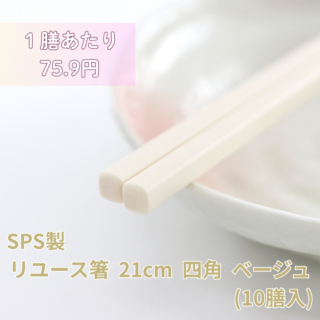 【SPS製リユース箸】 21cm 四角 ベージュ (10膳入)