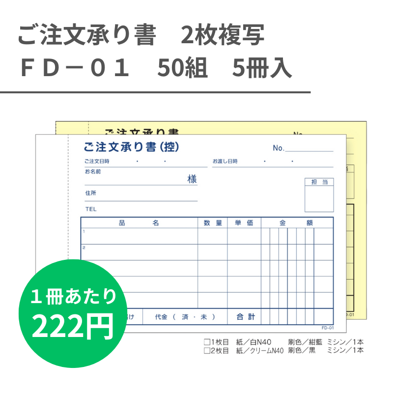 FD-01 ご注文承り書 2枚複写x50組 5冊