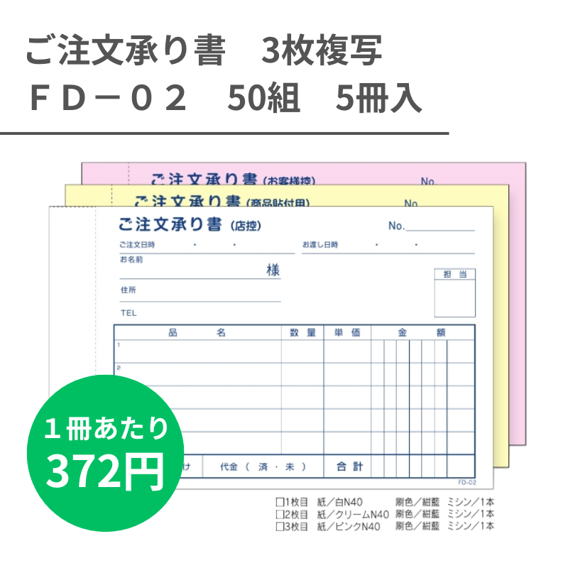 FD-02 ご注文承り書 3枚複写x50組 5冊