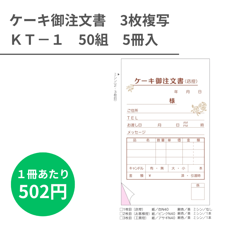 KT-2 ケーキ御予約伝票 3枚複写x50組 5冊