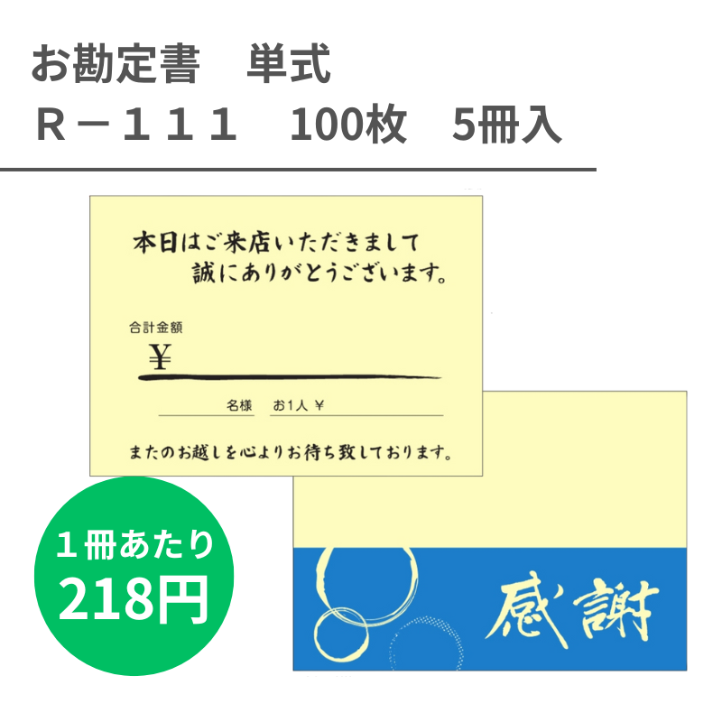 R-111 お勘定書 単式x100枚 5冊