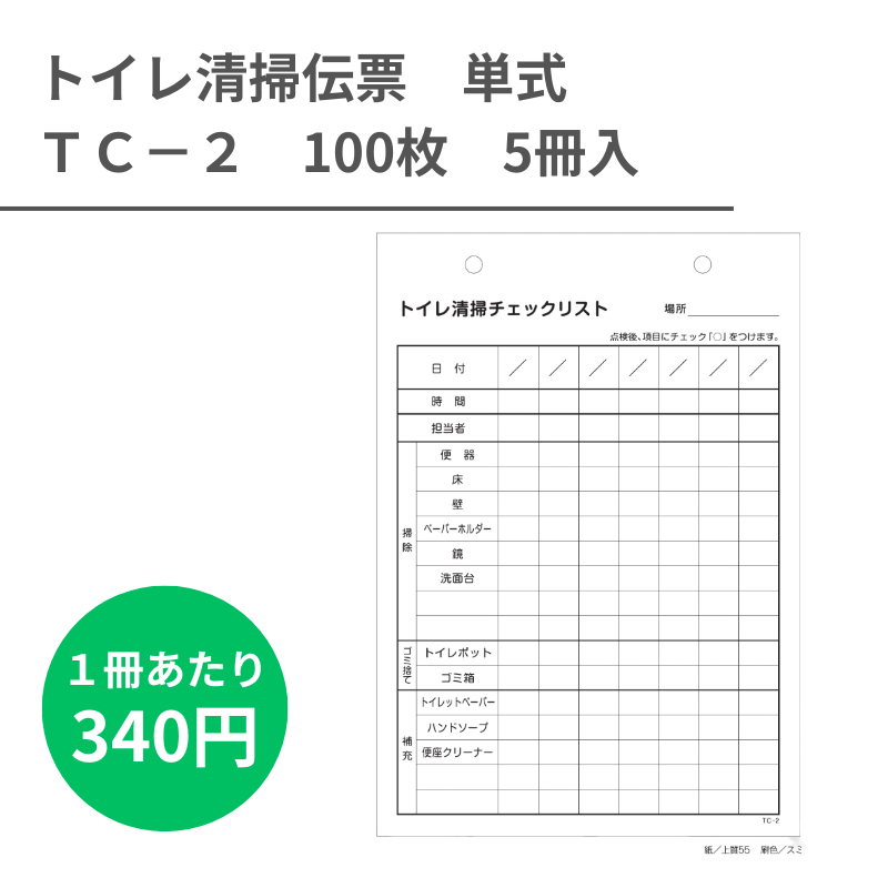 TC-2 トイレ清掃伝票 単式x100枚 5冊
