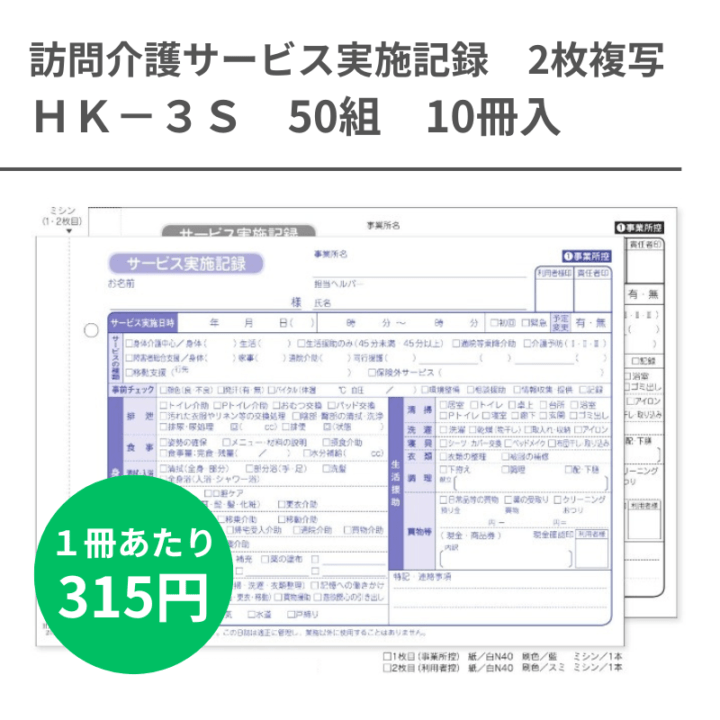 HK-3S 訪問介護サービス実施記録 2枚複写x50組 10冊