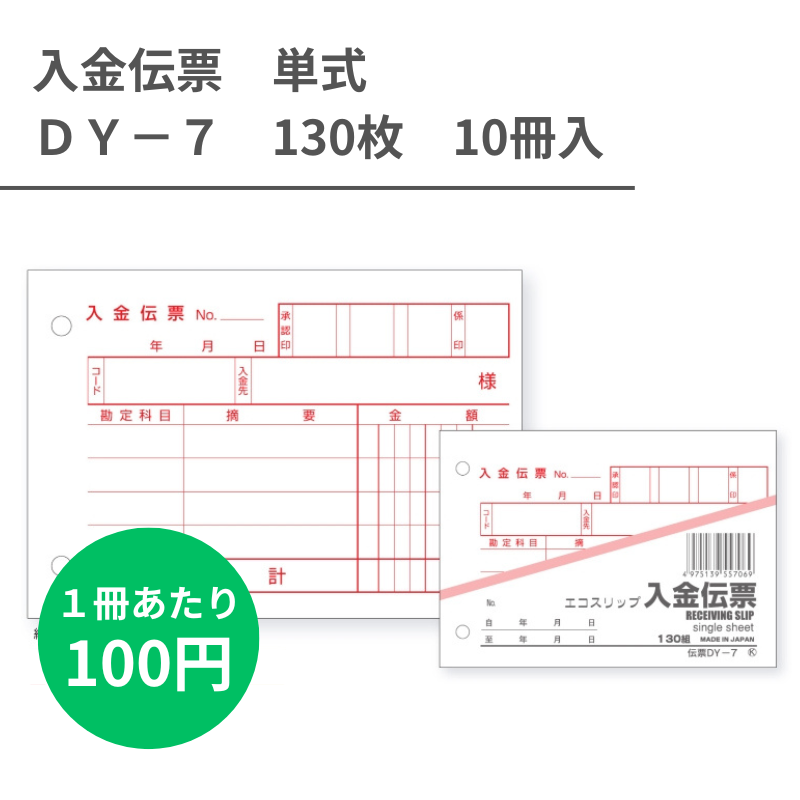 DY-7 入金伝票 単式x130枚 10冊