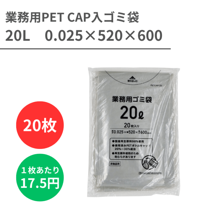 業務用PET CAP入ゴミ袋 20L 0.025X520X600 20枚入