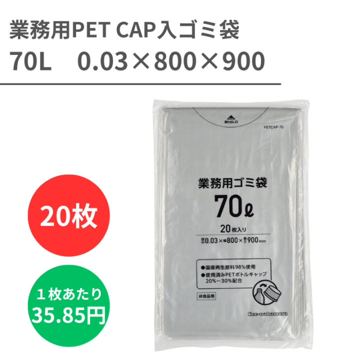 業務用PET CAP入ゴミ袋 70L 0.03X800X900 20枚入