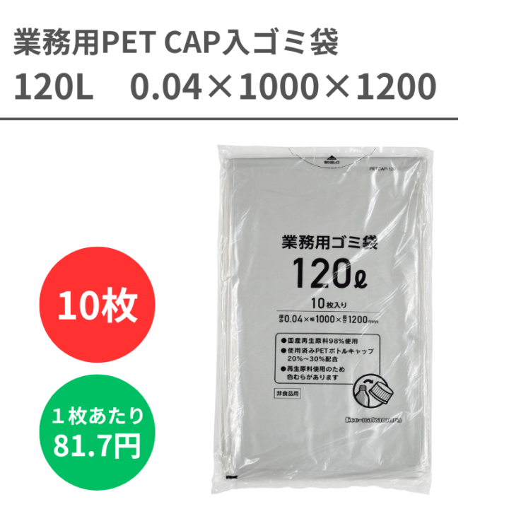 業務用PET CAP入ゴミ袋 120L 0.04X1000X1200 10枚入