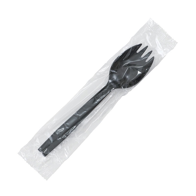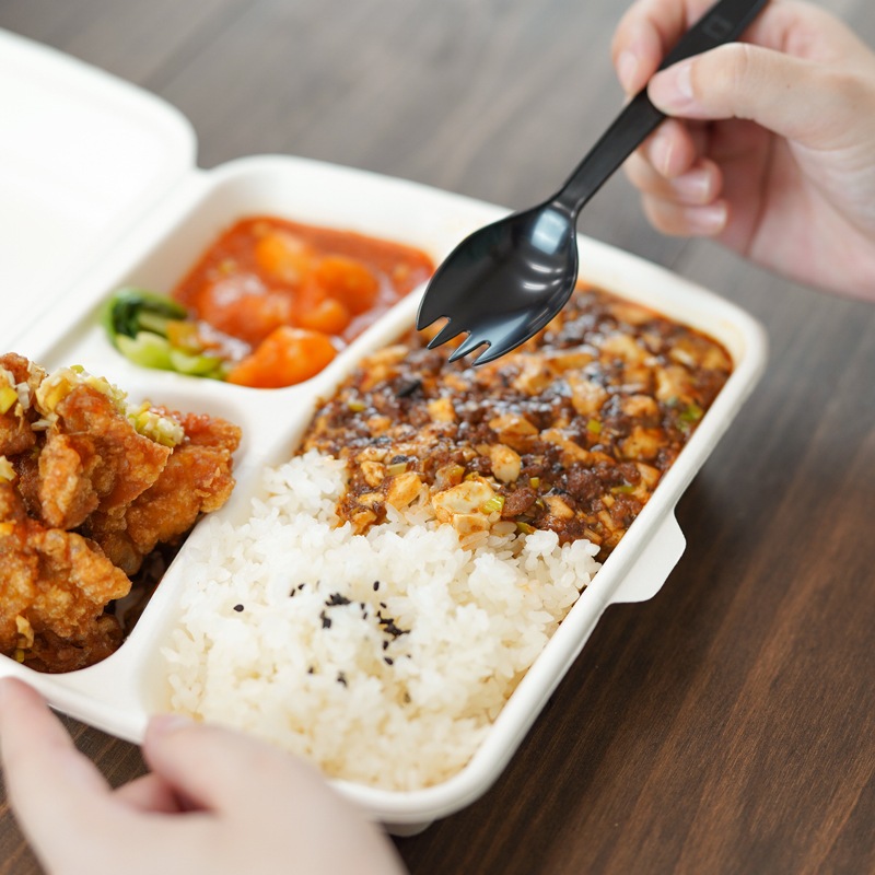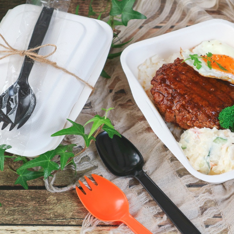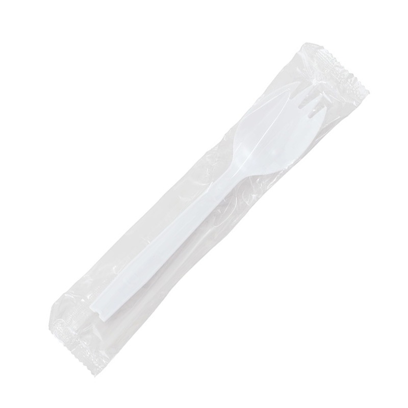 シンプルなデザインの使い捨て先割れスプーンです。