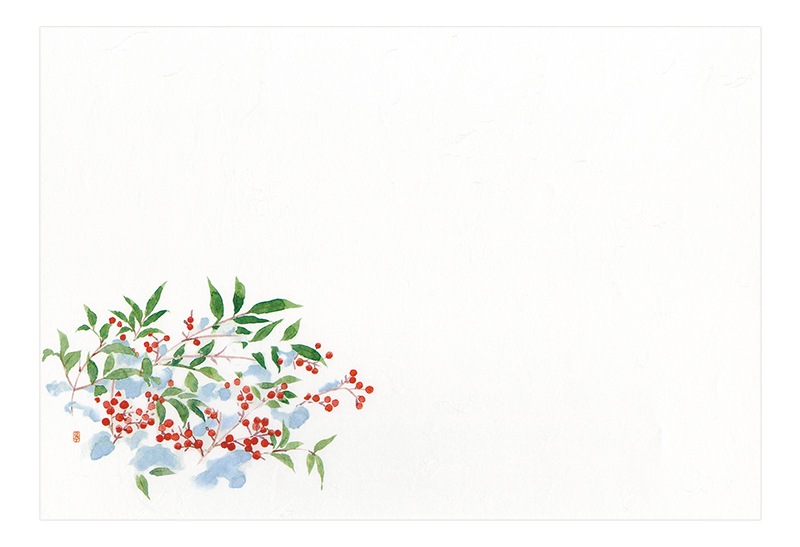 南天が描かれた高級和紙使用の使い捨てテーブルマットです。