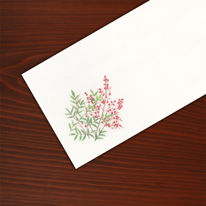 和紙に南天が描かれた四季柄テーブルマットのミニサイズです。