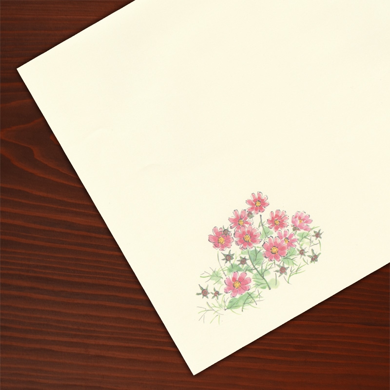 一般に最も馴染みのあるA4サイズにコスモスの花が描かれたテーブルマットです。