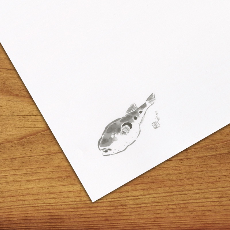 ふぐがワンポイントで描かれている和風テーブルマットです。