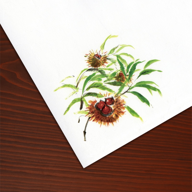 栗のイラストの入った大判の使い捨てテーブルマットです。
