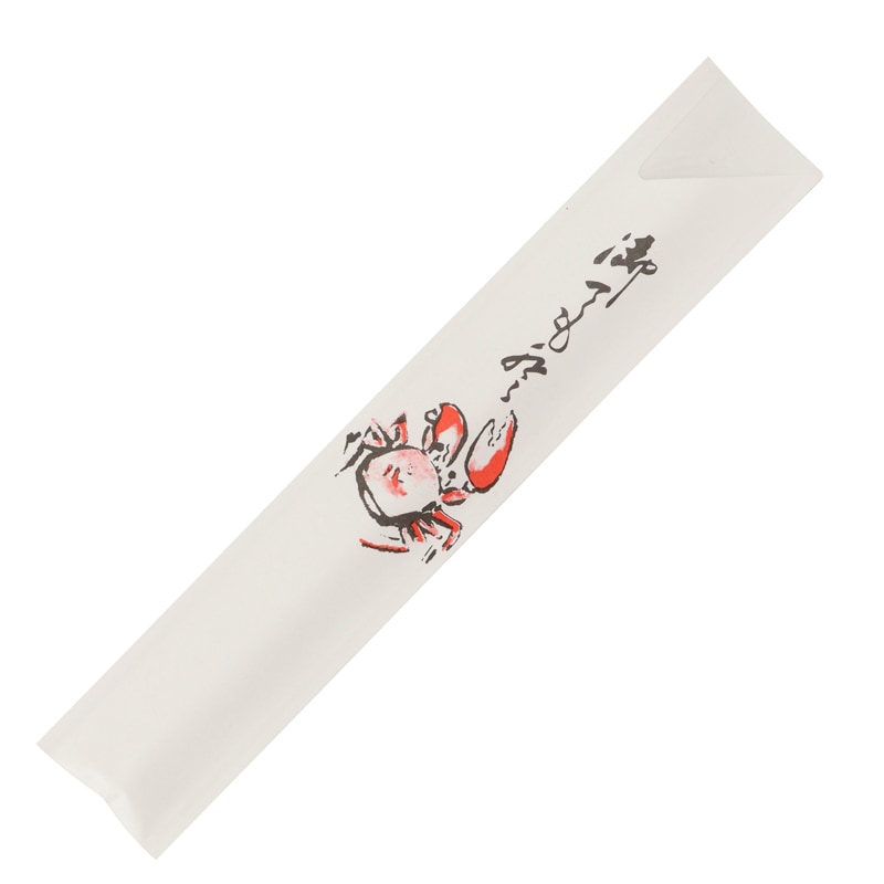 墨で描かれた愛嬌のあるカニのイラストがワンポイントの箸袋です。
