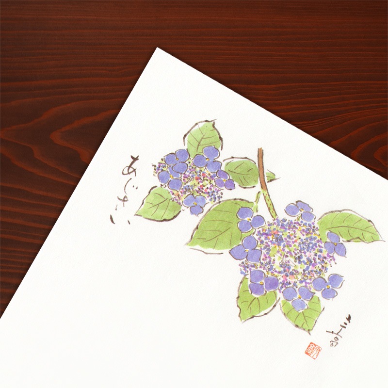 涼しげな青色の紫陽花を描いたテーブルマットです。