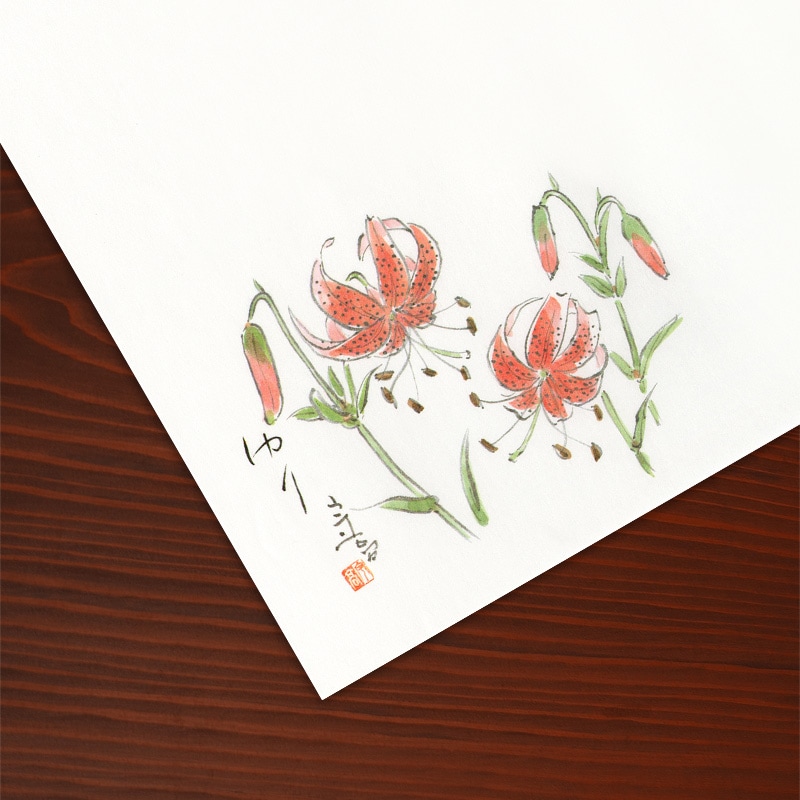 存在感のある大輪のオニユリが描かれたテーブルマットです。