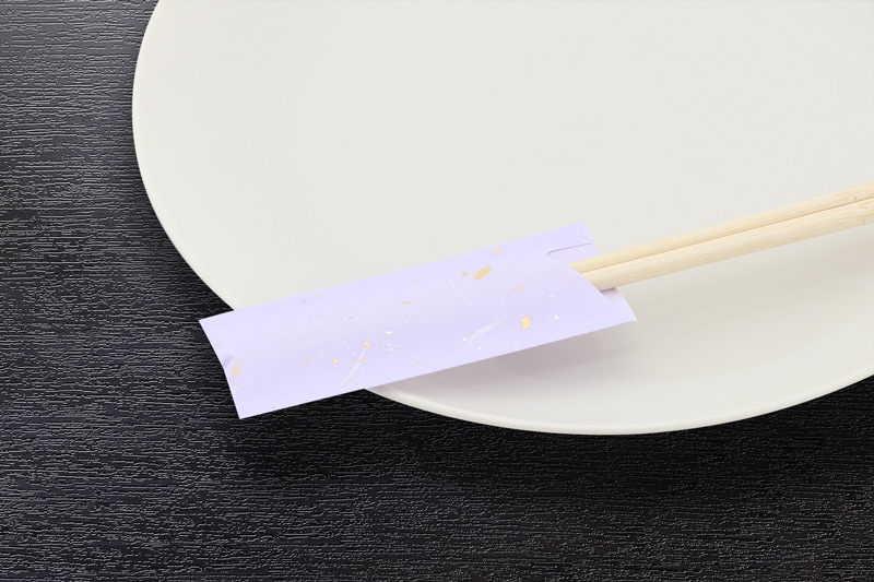 和紙風印刷用紙を用いたシンプルな箸袋です。食卓を品よく鮮やかに彩ります。