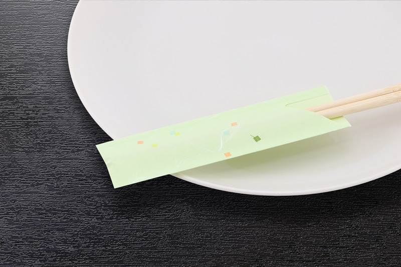 和紙風印刷用紙を用いたシンプルな箸袋です。食卓を品よく鮮やかに彩ります。