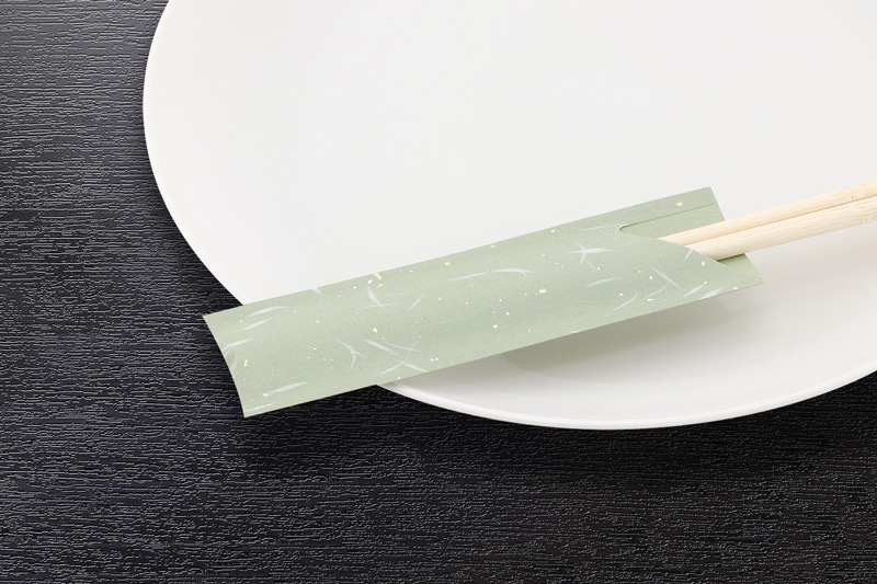和紙風印刷用紙を用いたシンプルな箸袋です。食卓を品よく鮮やかに彩ります。